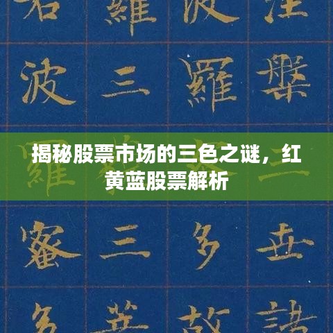在股票市场中,我们常常听到一些特定的词汇与颜色相关联,如“红黄蓝是什么股票”,这些颜色背后代表着不同的含义和股票特性,本文将详细解析红、黄、蓝三种颜色在股票市场的含义,帮助读者更好地理解股票市场中的相关信息。
